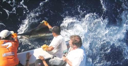 und beim Hochseeangeln erwischten sie einen praechtigen 175 kg Blue Marlin,