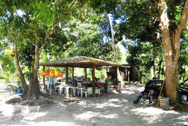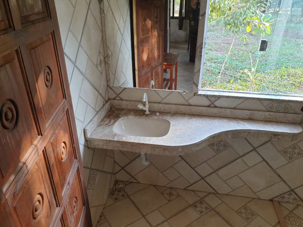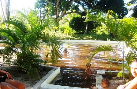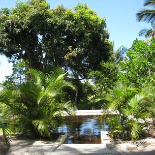 gemauerter Badeteich, Pavillon, riesige Mango- und Jaca-Baeume, Kokos-Plantage, Açai, Jambo, Kakau,