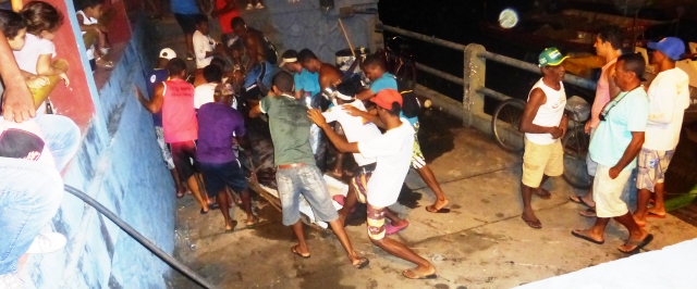 mit 12 Mann wurde der Blue Marlin transportiert, man sieht ihn nicht vor lauter Leute